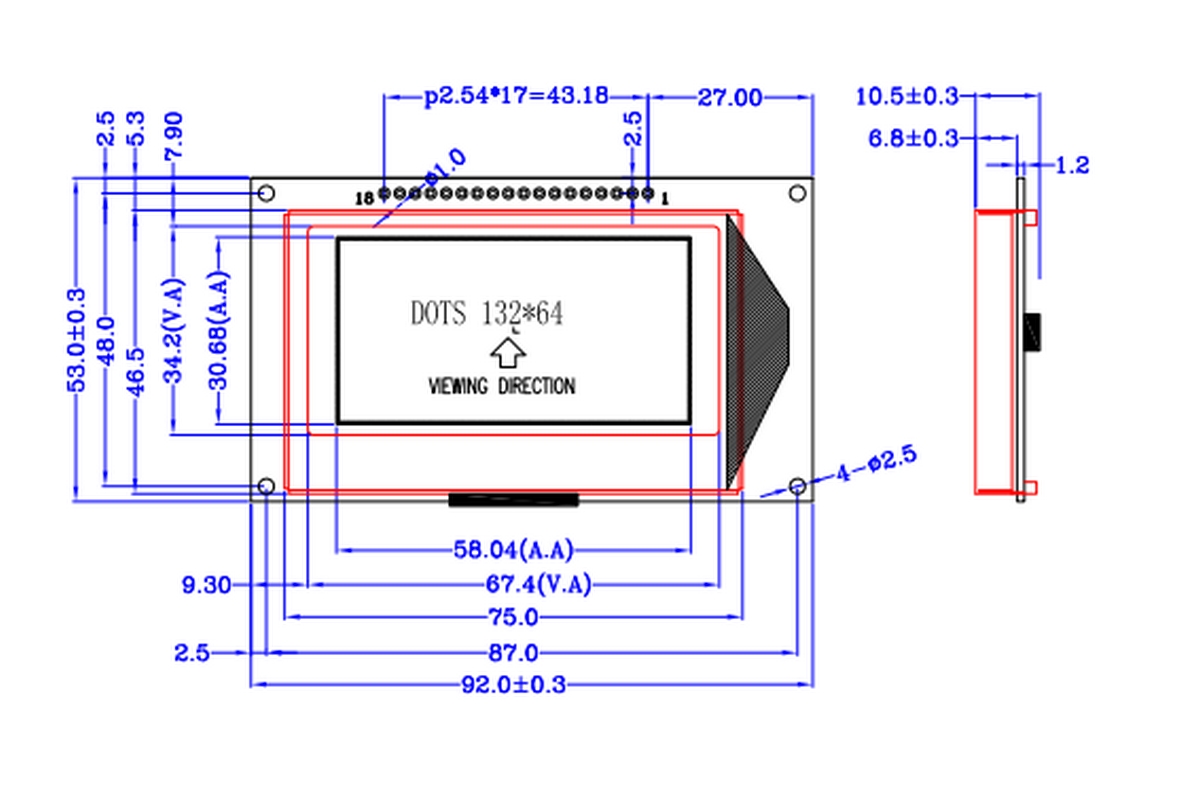 LCD外形尺寸: 92.0*53.0*10.5