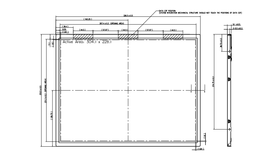 | 显示区域 | 304.128(横)×228.096(竖) mm | 像素布局 | RGB垂直条状 |