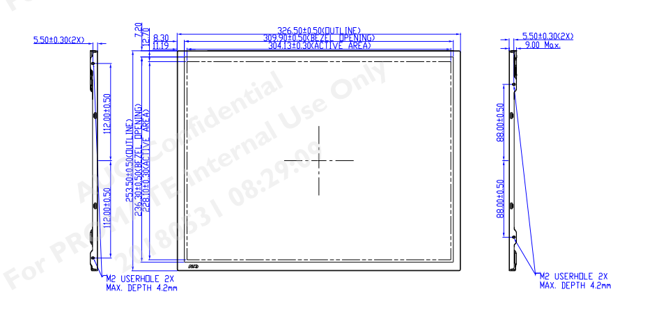 | 外观尺寸 | 326.5(W)×253.5(H) ×9(D) mm | 可视尺寸 | 309.9(W)×236.3(H) mm |