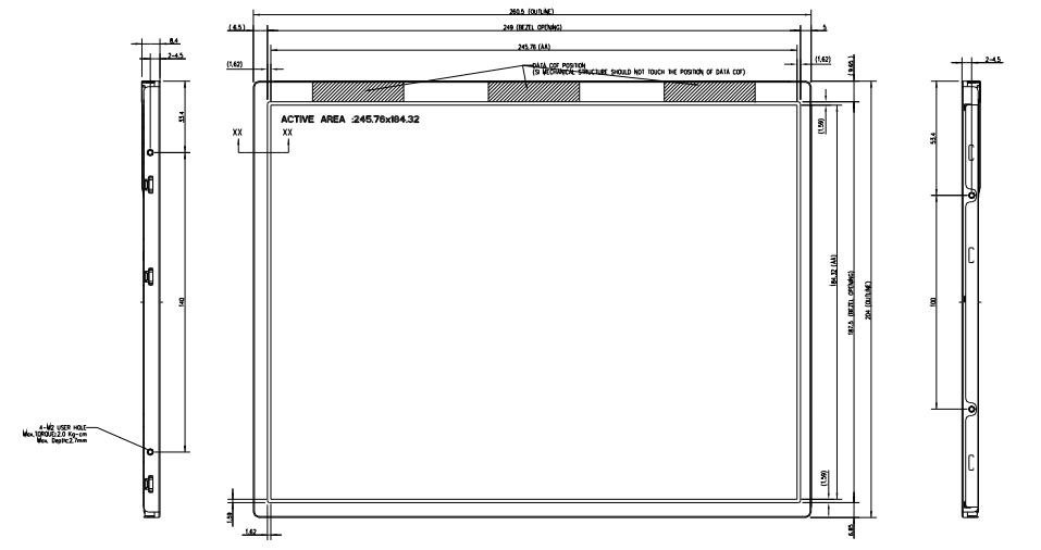 | 显示区域 | 245.76 × 184.32 mm (H×V) | 像素布局 | RGB垂直条状 |