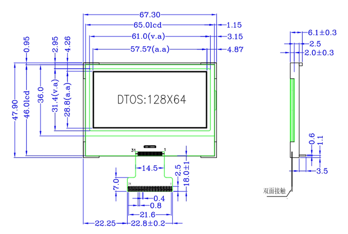 显示模式: STN,蓝膜,全透,负显(其他颜色请咨询)