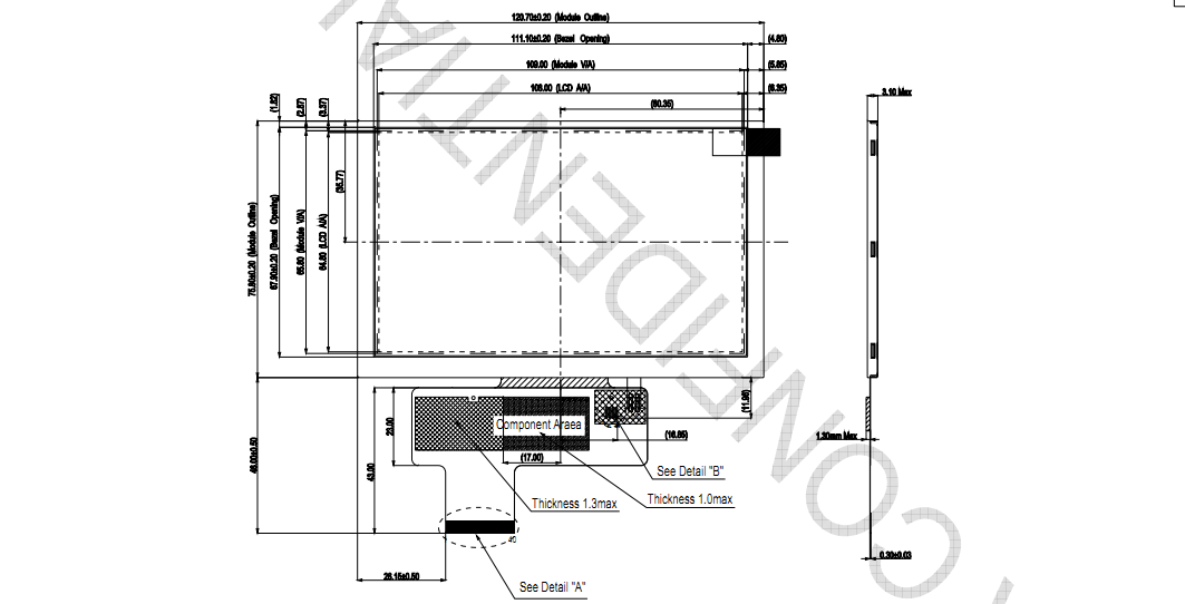 | 面板重量 | 57.0g (Typ.) | 驱屏电压 | 3.3V (Typ.) |