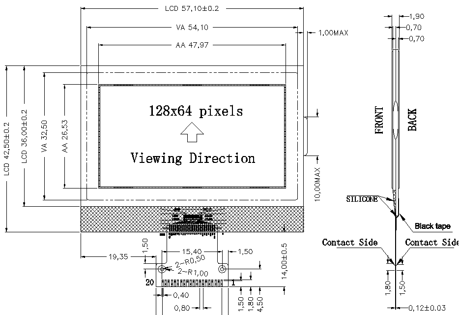 LCD外形尺寸:57.1*42.5*1.9