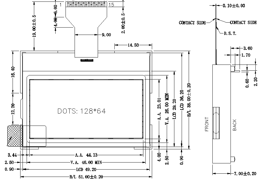 LCD外形尺寸:51.0*38.0*7.0
