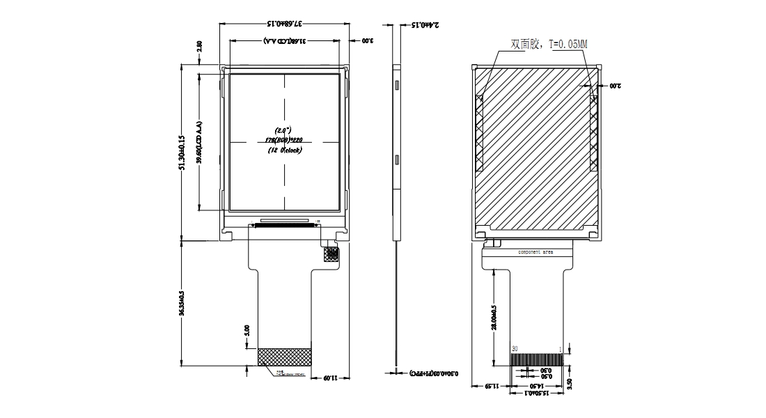 LCD外形尺寸:37.68*51.3*2.4