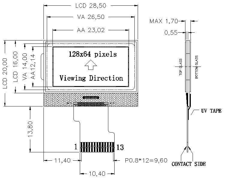 LCD外形尺寸:28.5*20.0*1.7