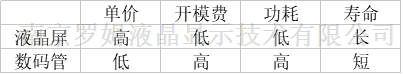 这类小编给大家整理了一份表格,对比了液晶屏和数码管的区别,一目了然,方便大家区分: