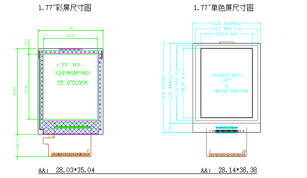 二、以1.77"彩屏VA区尺寸定制,实现最大 168*206 点阵数