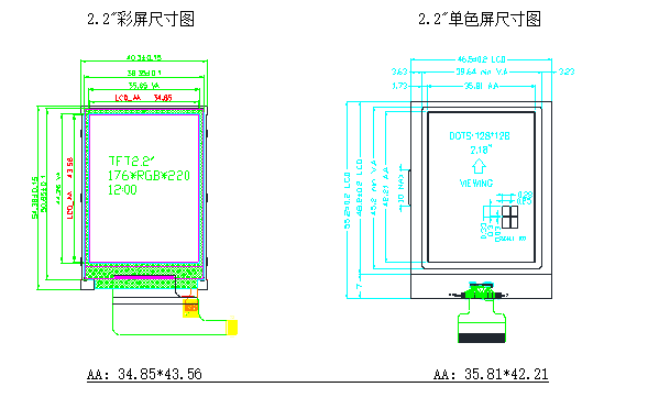 一、以2.2寸彩屏AA区尺寸定制,实现最大 179*210 点阵数