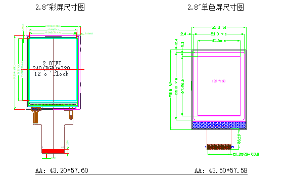 二、以2.8"彩屏VA区尺寸定制,实现最大 255*320 点阵数