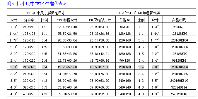 以上表格中11款产品是液晶屏厂家工程师整理出来的。有需要的可以咨询南京罗姆液晶官网客服!