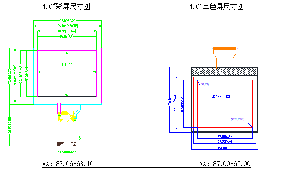 二、以4.0"彩屏VA区尺寸定制,实现最大 320*240 点阵数